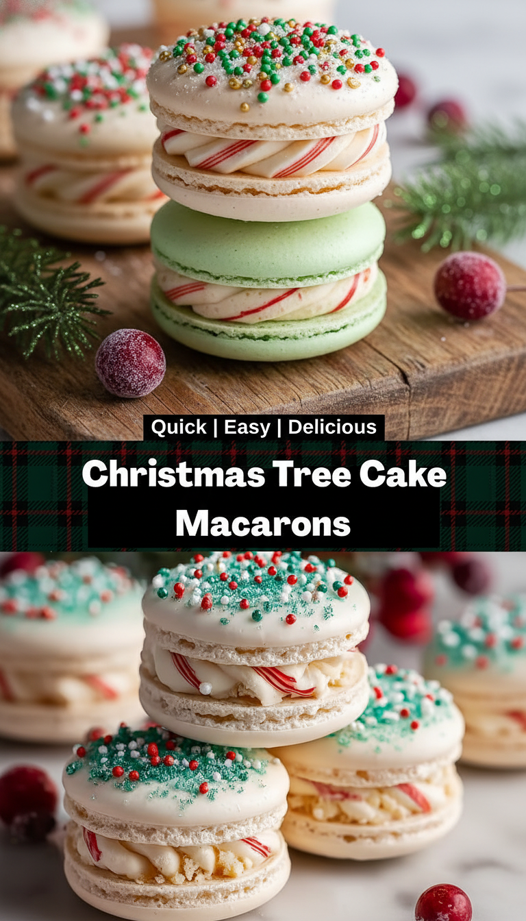 These Christmas Tree Cake Macarons aren’t just a treat; they’re a celebration on a plate that will bring joy and smiles to anyone who takes a bite. With a little patience and love, you’ll create a batch of these elegant delights that capture the essence of the holiday season. So gather your ingredients, put on your favorite festive tunes, and let your creativity shine as you whip up these enchanting macarons!