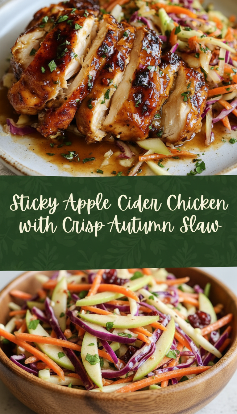 This Sticky Apple Cider Chicken with Crisp Autumn Slaw is a delightful way to embrace the flavors of the season. The harmony of the savory chicken and crunchy slaw creates a meal that’s not only delicious but also visually captivating. Whether it’s a weeknight dinner or a special occasion, this dish is sure to impress and warm your heart. Happy cooking!